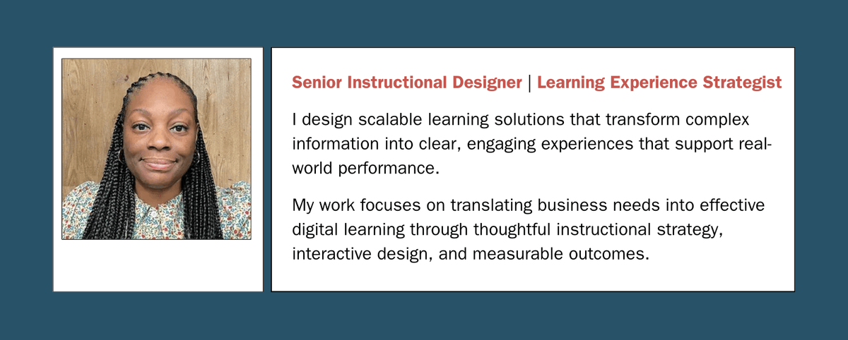 Hello, I'm Kenyeh, an instructional designer, curriculum specialist, and eLearning developer with experience creating learning solutions across corporate and higher education environments.